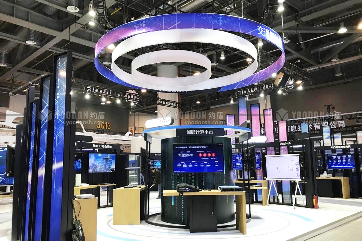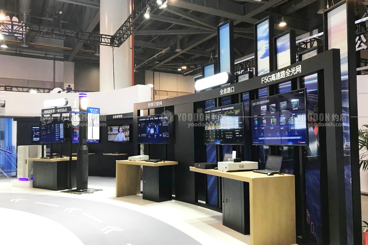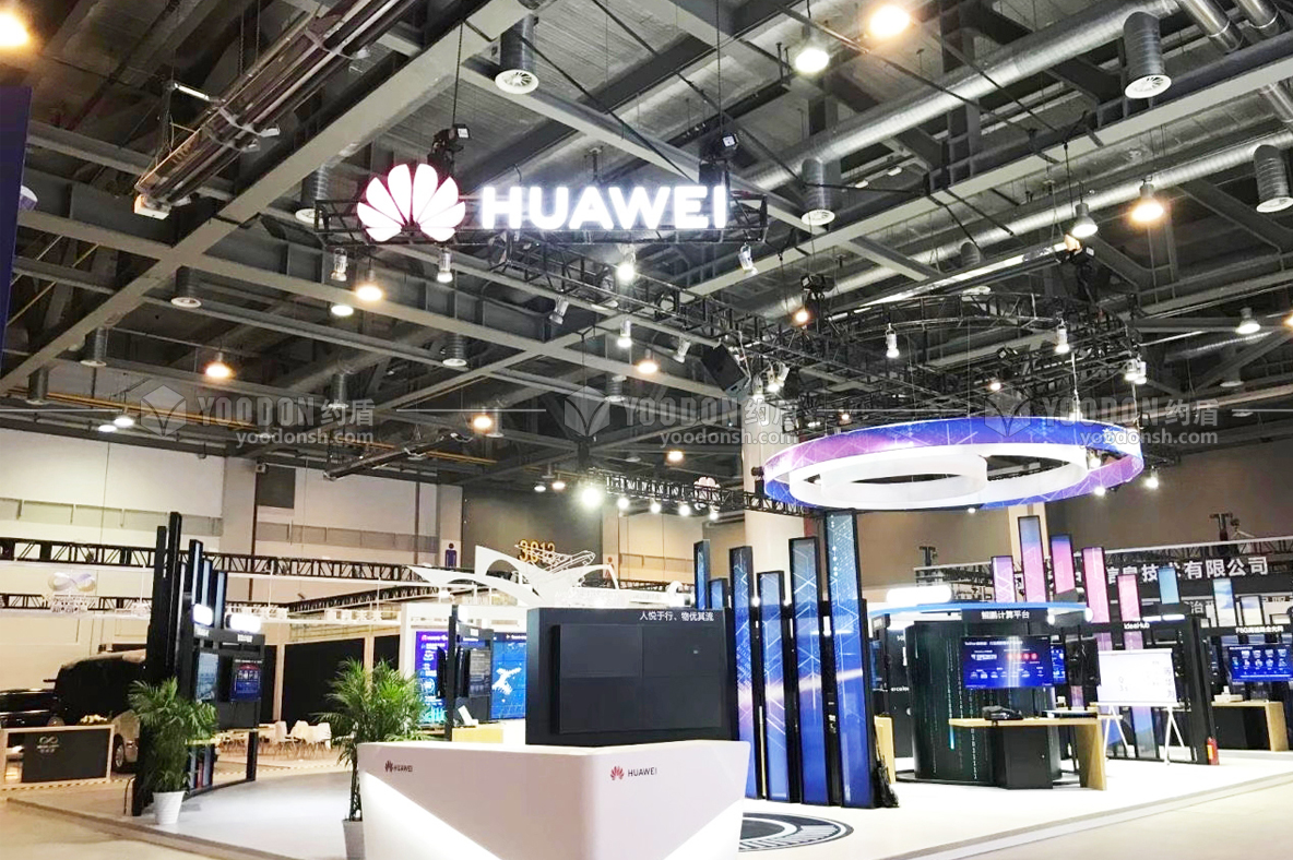 華為展臺(tái)搭建設(shè)計(jì)的風(fēng)格高科技高智能,引領(lǐng)時(shí)代的潮流。
