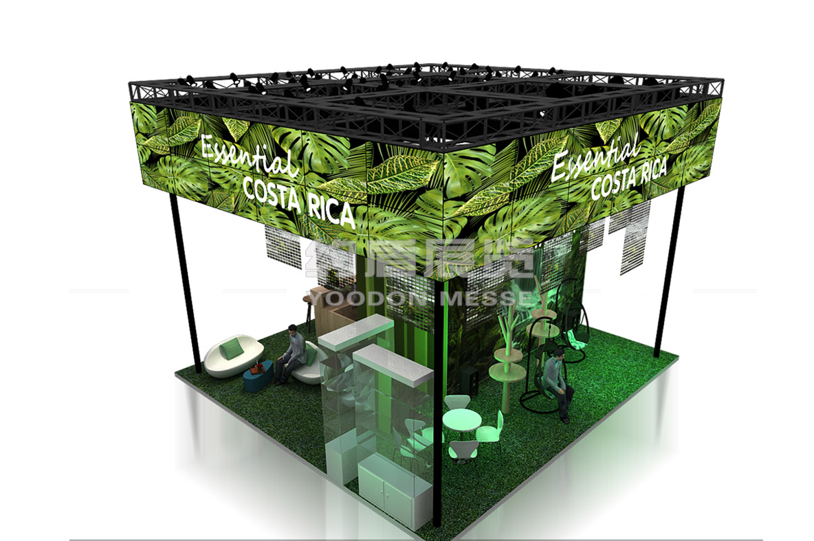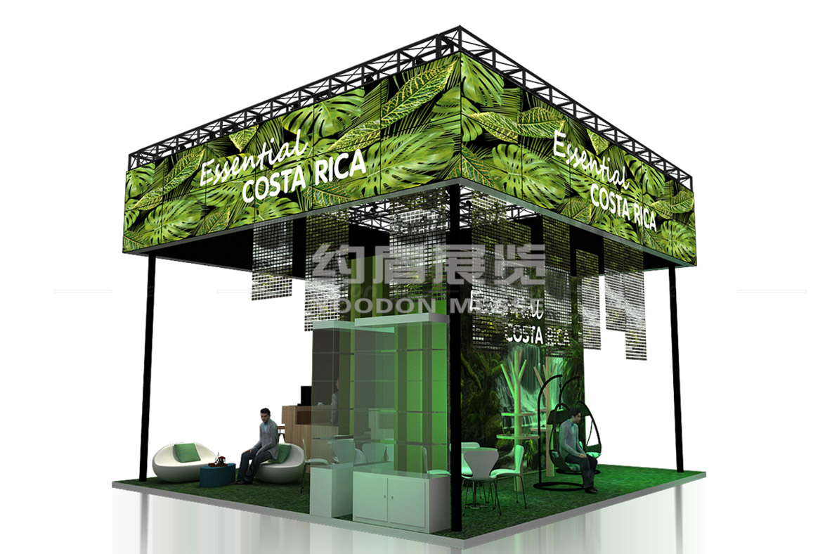 哥斯達(dá)黎加國土面積僅占世界陸地面積的0.03%,但擁有全球近4%的物種,是世界上生物物種最豐富的國家之一。26%的國土面積為國家公園或自然保護(hù)區(qū),全國森林覆蓋率為52%。因此本次哥斯達(dá)黎加國家館在展臺(tái)設(shè)計(jì)搭建中的創(chuàng)意理念就是:沉浸式體驗(yàn)-哥斯達(dá)黎加全方位體驗(yàn)之旅.