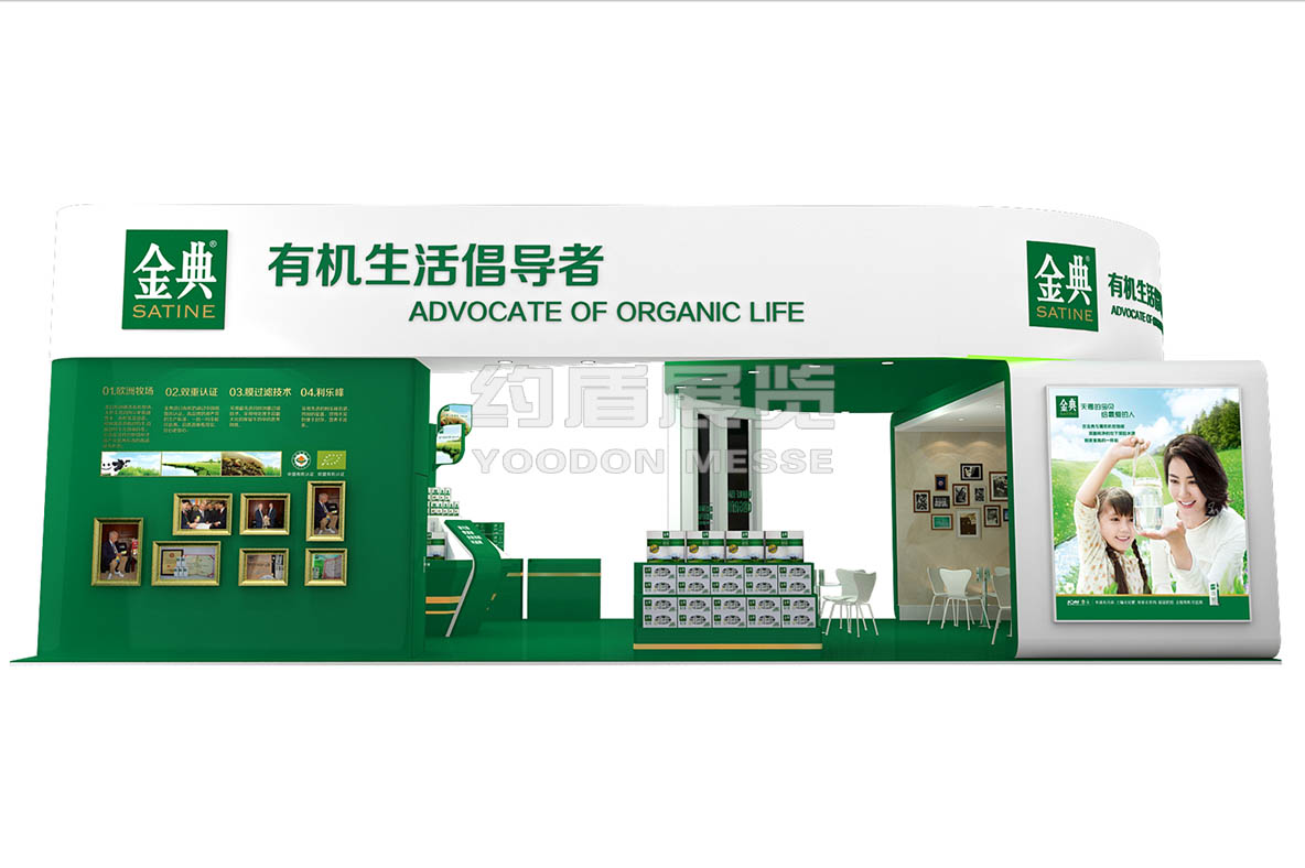 由于有機奶的生產(chǎn)認證嚴格、投入要求巨大,對于奶牛養(yǎng)殖環(huán)境、加工工藝都有著極為復(fù)雜的要求;長期以來,在我國一直沒有乳品企業(yè)生產(chǎn)有機奶。直到2007年,金典有機奶問世,填補了我國有機乳品市場的空白。在多年的研發(fā)中,金典認真分析了國際有機標準,并嚴格按照這個標準打造了一條完整的有機牛奶生產(chǎn)鏈。金典展覽設(shè)計制作有機生活倡導(dǎo)者的主題吸引廣大意向客戶前來咨詢。